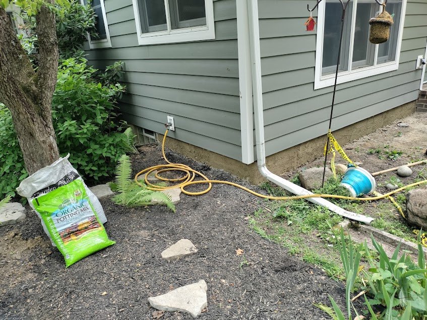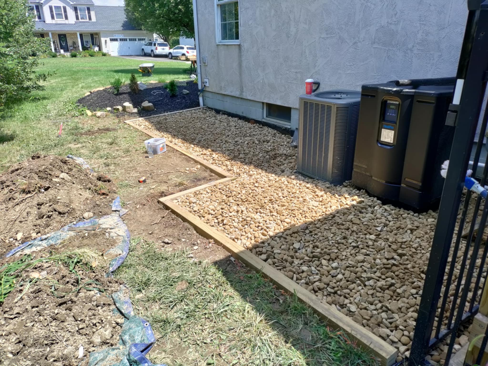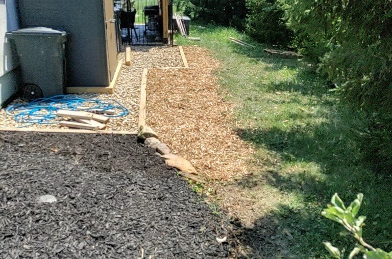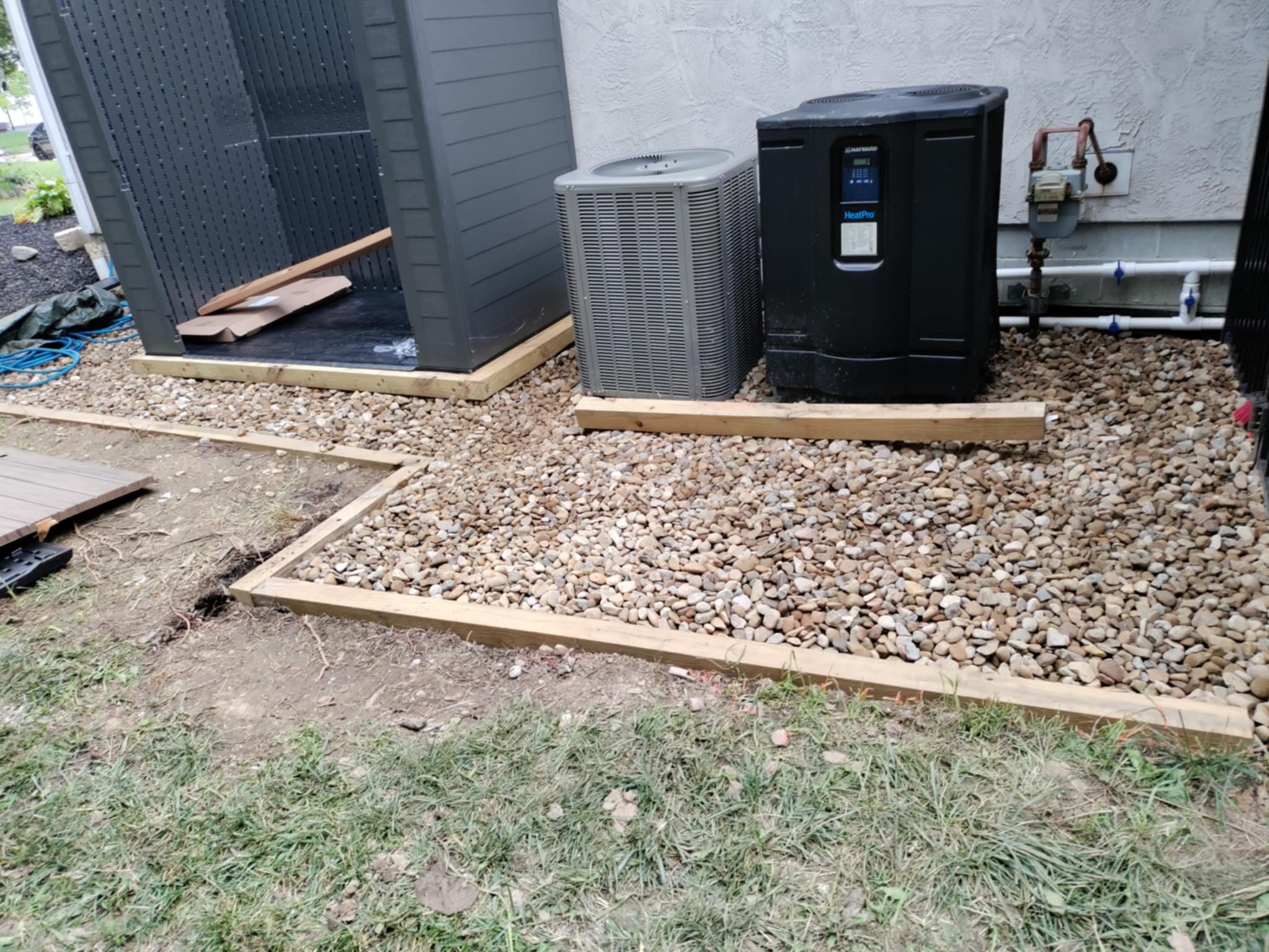 This one took a little more than a full day’s work. We tilled 6 inches of dirt, removed it, laid landscape fabric, put a 4x4 post on the outer edge (fabric and base rock underneath 4x4 post and more fabric for wood to dirt contact), put a few tons of rock in it’s place, built a wooden frame for the shed out of 4x4s (client insisted on building the shed themselves), laid straw and grass seed. There’s also something satisfying about working outside in the summertime. We weeded, tilled, planted, and mulched a huge garden bed for this client months prior to this project, that was fun too. I’ll see if I can find the pictures. Stay tuned!