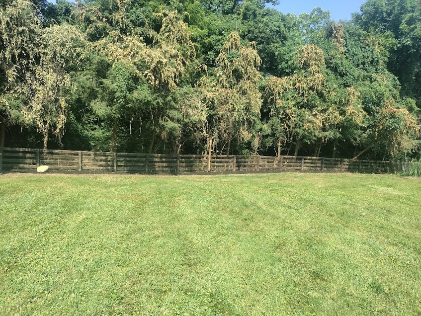 So the whole thing was full of poison ivy, it was tangled in the trees and everything. They had been living there for 13 years and had never seen their fence. With some research, this is what we came up with.