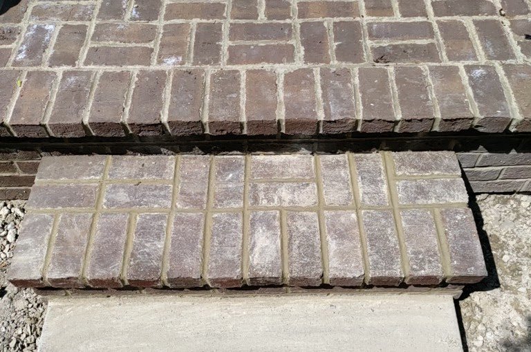 This project we did some time back in May or June of 2025, this was a subcontract. We were hired to install the veneer brick and the step, but we did not do the porch. This was in Granville, I still remember the homeowners, they were nice people. Theres something satisfying about grouting brick and striking the grout. Anyway, I think it turned out great.
